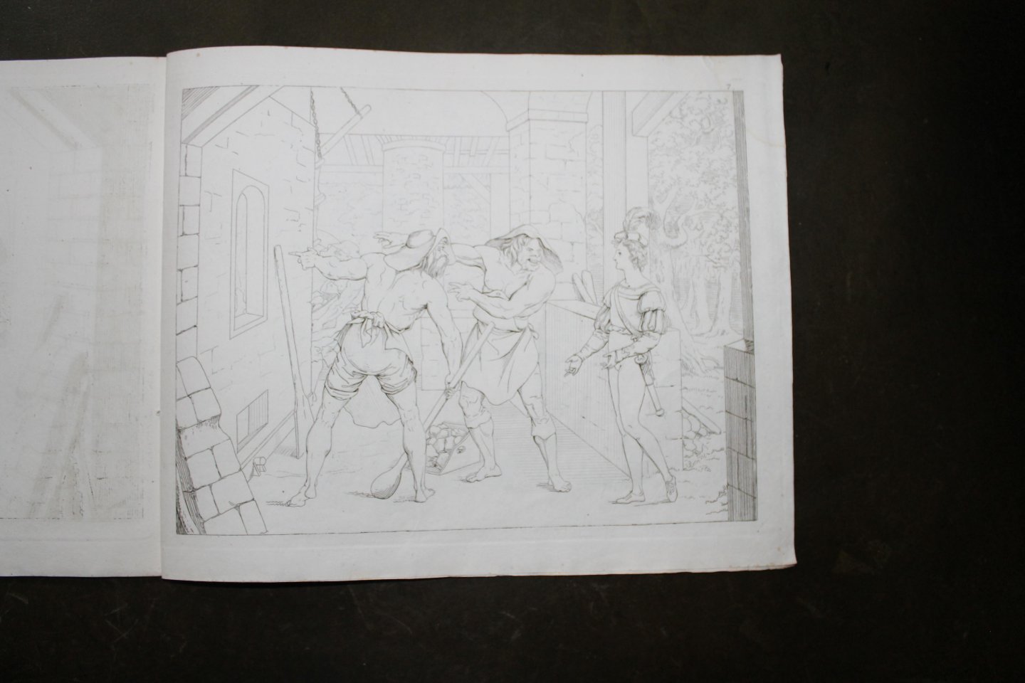 1823, Broschur mit 10S. Text. + 8 Radierungen in Umschlag. Umschlag schmutzig und mit Gebrauchsspuren. Radierungen mit leichten Fleck Ecke rechtsoben. Sonst gut erhalten. Siehe Bilder. Querformat