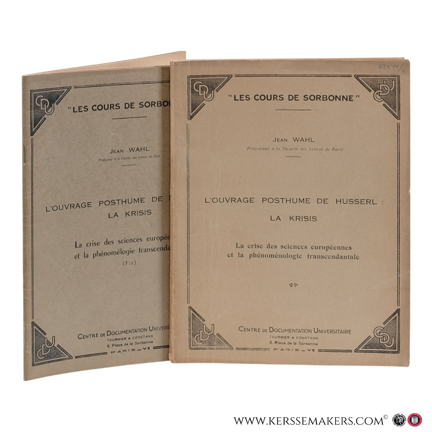 L'ouvrage posthume de Husserl : La Krisis. La crise des sciences européennes et la phénoménologie transcendantale & (Fin). [2 volumes].