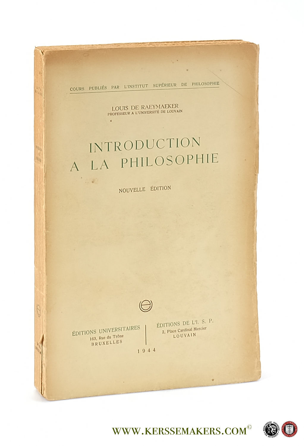 Wrappers (paperback) 272 pp.; 24 cm. - "Cours Publiés par l'Institut Supérieur de Philosophie" Text in French. (spine slightly damaged, covers and paper browned) Although still (very) good, see picture
