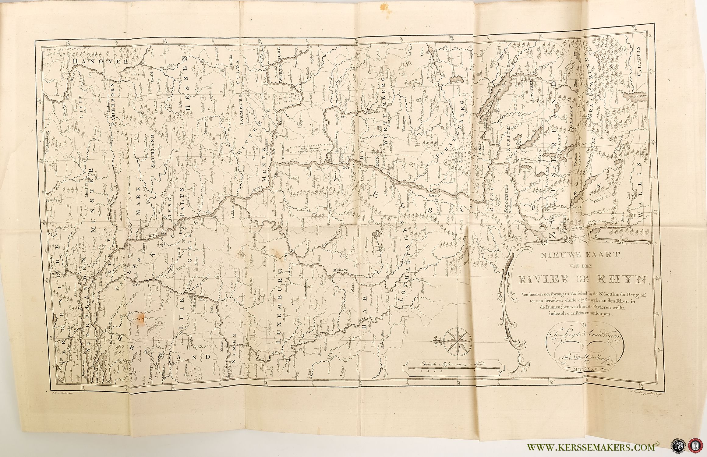 Full leather binding. 16,225,11 pp.; 23x14.5 cm. Complete with frontispiece, large folding map of the Rhine from its origin to Katwijk and 3 folding plates (Mülheim, Nijmegen, Zutphen). Text in Dutch / Nederlands (leather bit rubbed, slightly browned, some dog-ears) Although very good, see pictures