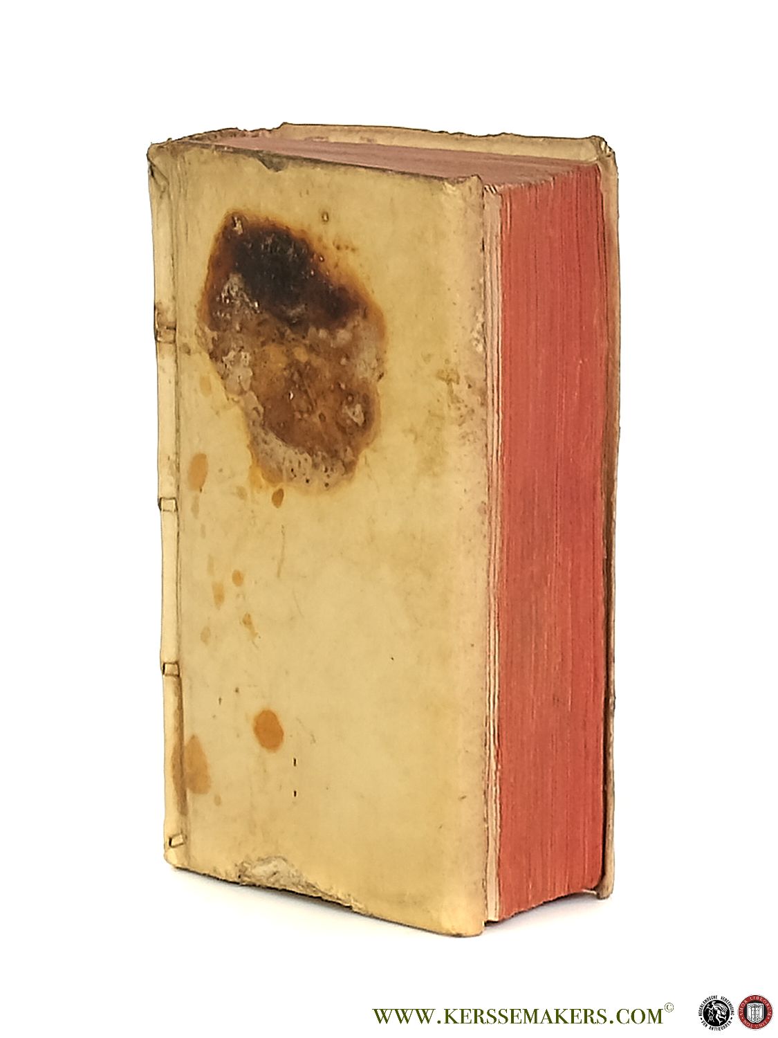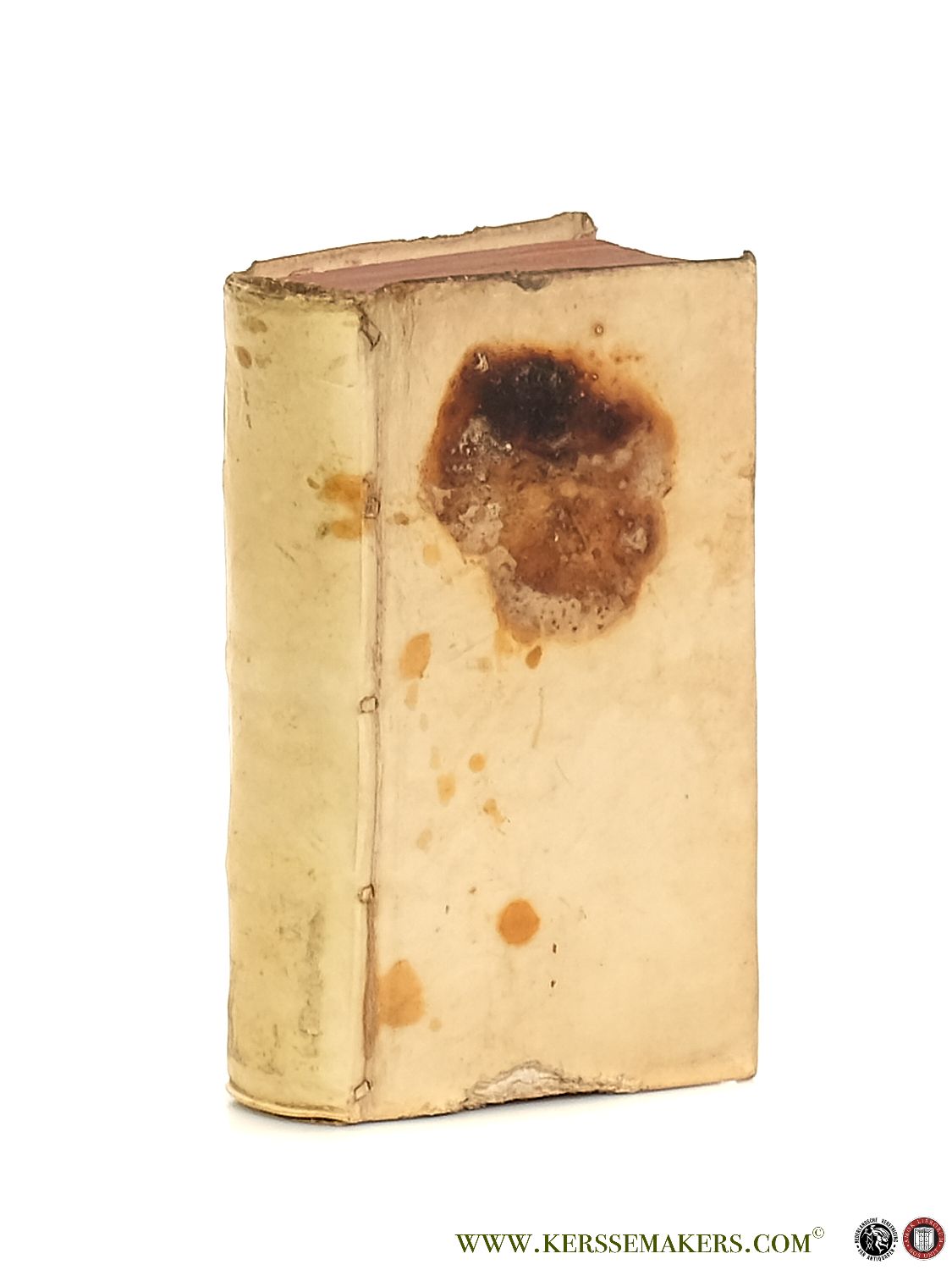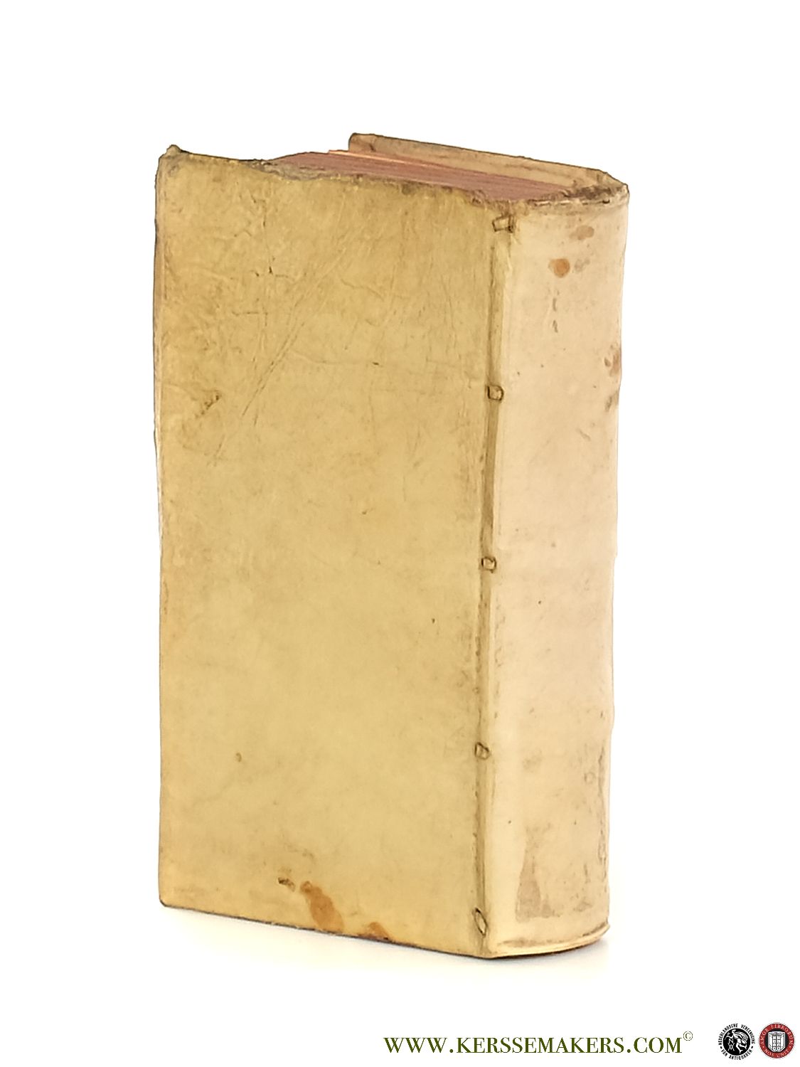 Contemporary vellum. Frontispiece, (22),471,(7) pp.; 13x8 cm. Text in Latin. (binding with stain on front cover, front cover bit damaged at bottom edge, 1 page slightly damaged) Although still very good, see pictures