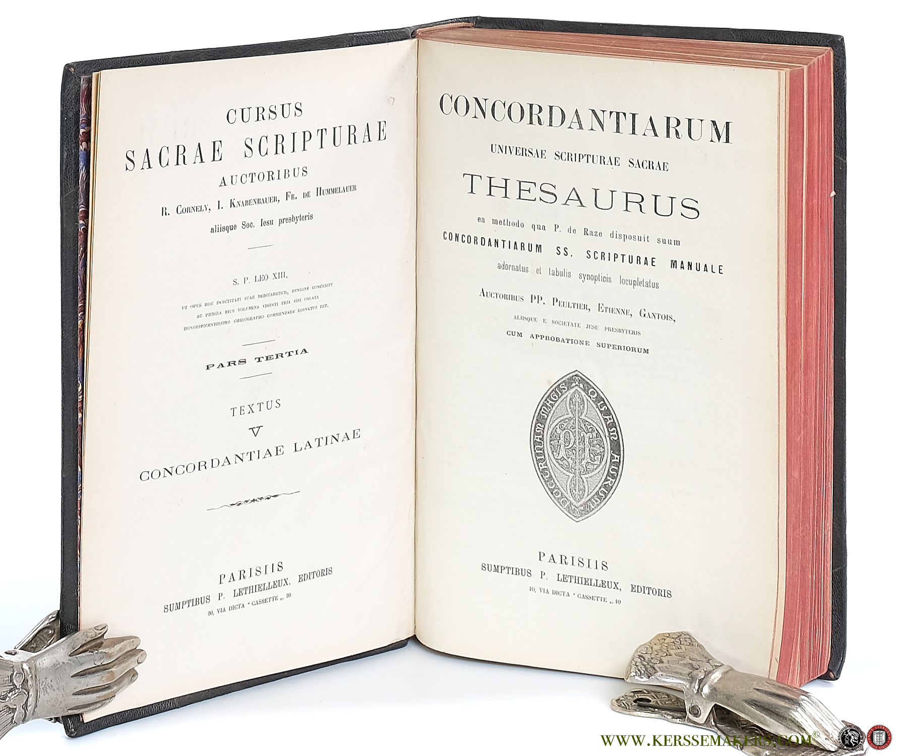 Concordantiarum universae Scripturae Sacrae thesaurus ea methodo qua P. de Raze disposuit suum Concordantiarum SS. Scripturae Manuale, adornatus et tabulis synoticis locupletatus. Cum aprobatione superiorum.