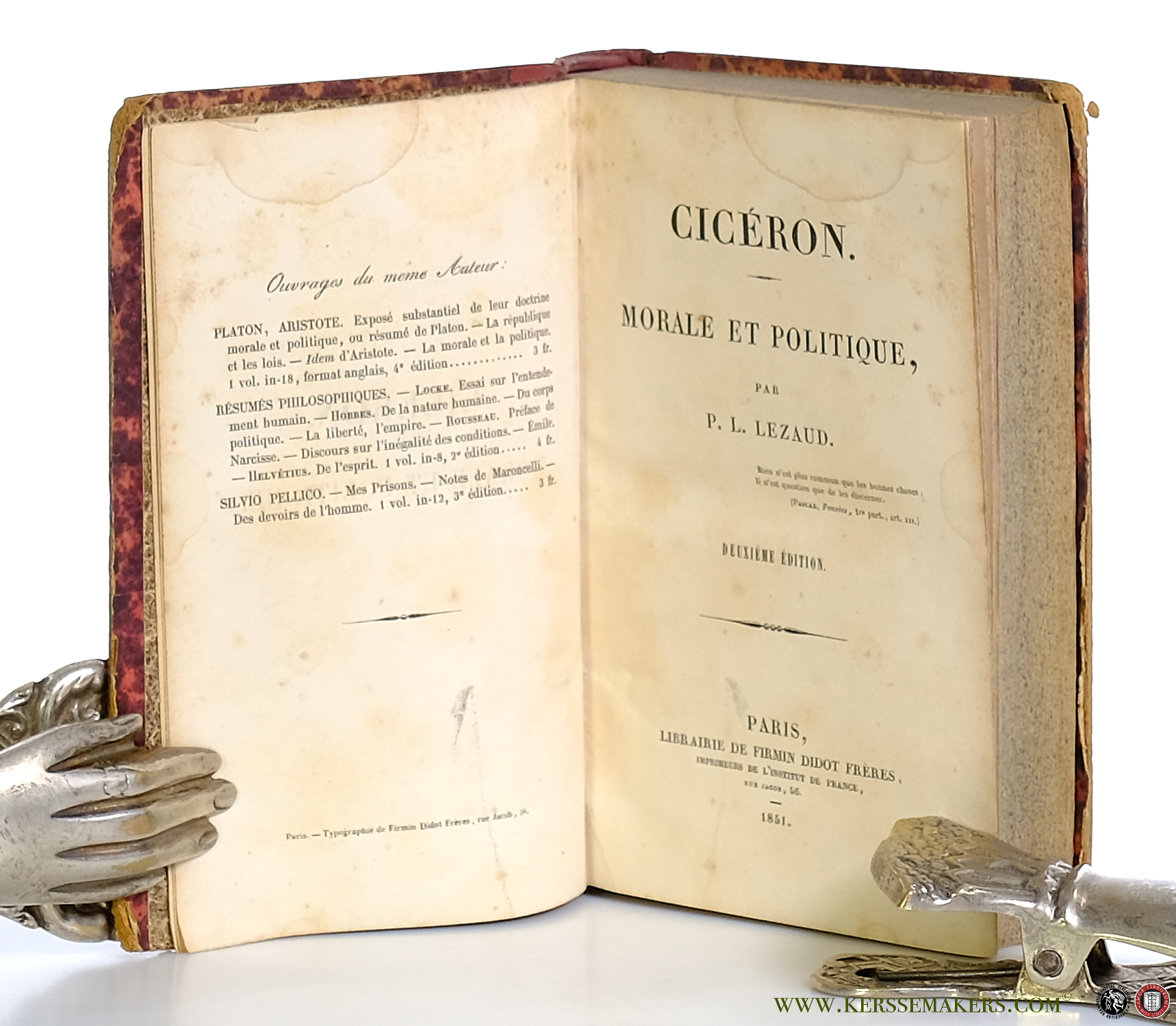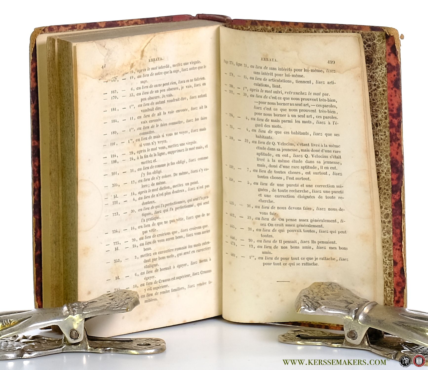 Half leather hardcover. vi,500 pp.; 18x12 cm. Text in French / Français. - (covers worn, some old (worm)holes to binding, top edge with (water)stain, top edge pages 492-493 damaged with slight loss of text) Although still acceptable, see picture