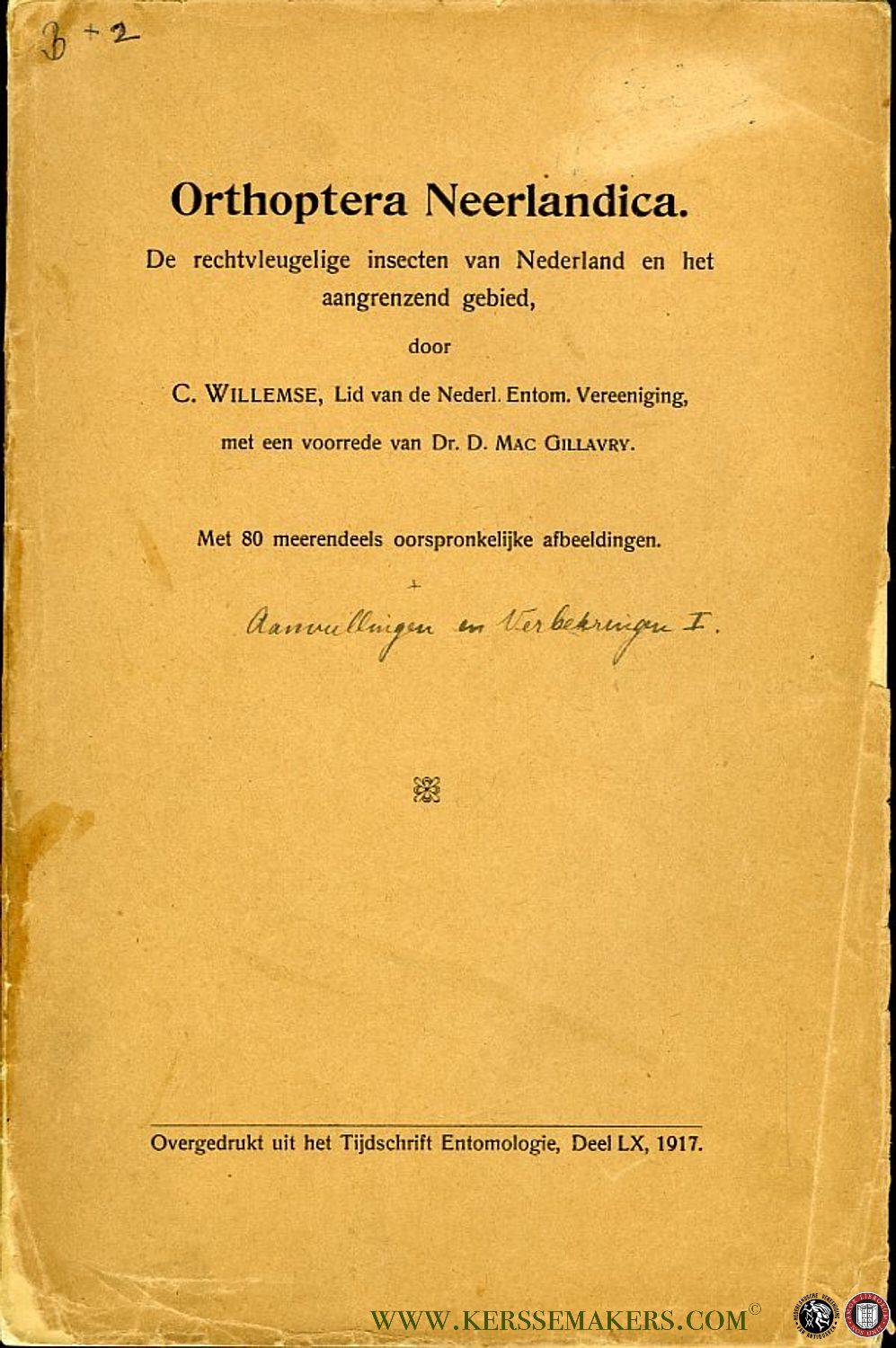 Orthoptera Neerlandica. De rechtvleugelige insecten van Nederland en het aangrenzend gebied (met aanvullingen en verbeteringen I)