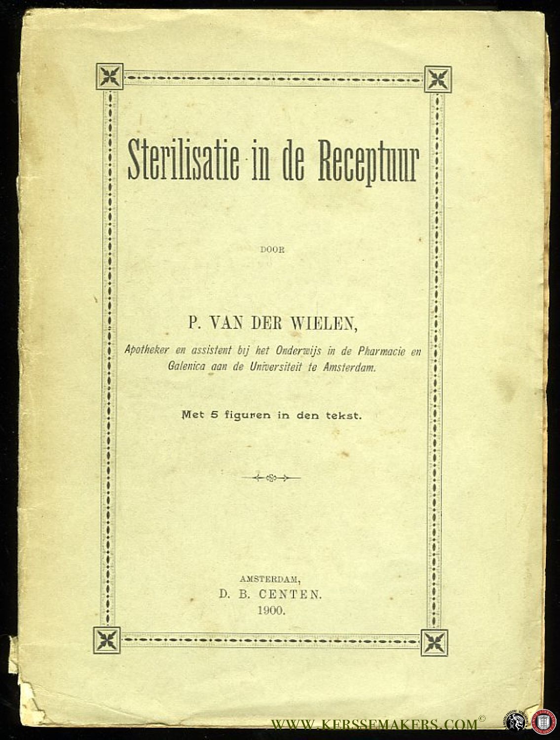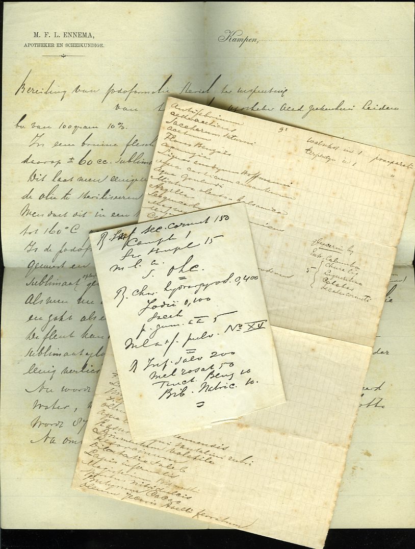 Sterilisatie in de Receptuur. Met 5 figuren in den tekst + Bijgevoegd: 3 velletjes met handgeschreven aantekeningen van apotheker Ennema uit Kampen, waarvan 1 op eigen briefpapier