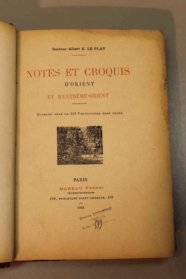 1908, 428pp. Ill. Later halfleather, bound with preservation of original front- and backcover. 5 raised bands, marbled boards and endpapers. Binding tight. Previous owner stamps. With signature and dedication by the author. Text in French.