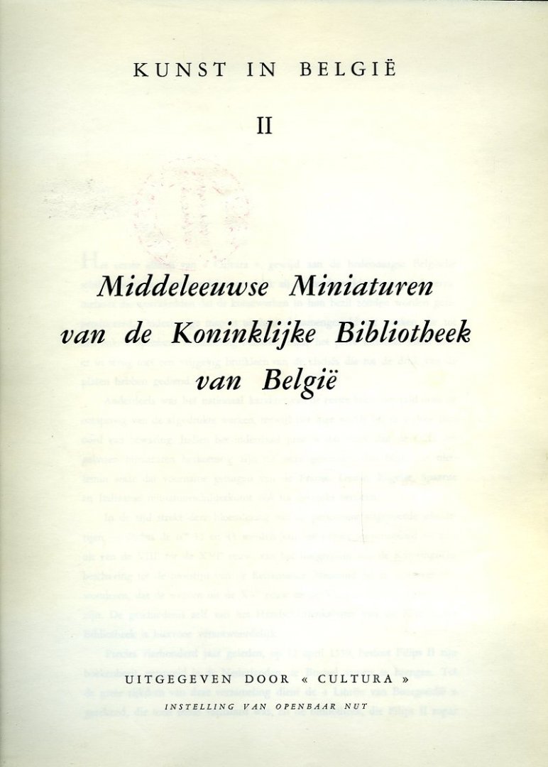 Middeleeuwse Miniaturen van de Koninklijke Bibliotheek van België. Kunst in België II