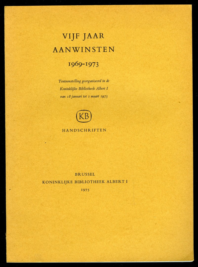 Vijf jaar aanwinsten 1969-1973 + Vijf jaar aanwinsten 1974-1978. Handschriften, Tentoonstelling georganiseerd in de Koninklijke Bibliotheek Albert I 1975 en 1979