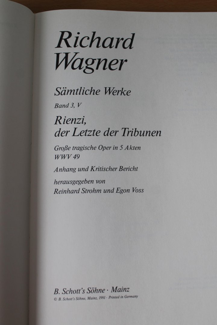 Richard Wagner, Sämtliche Werke Band 3,V,. Rienzi, der Letzte der Tribunen. Große tragische Oper in 5 Akten WWV 49 (Serie: Richard Wagner - Sämtliche Werke) Partitur und Kritischer Bericht Gesamtausgabe.