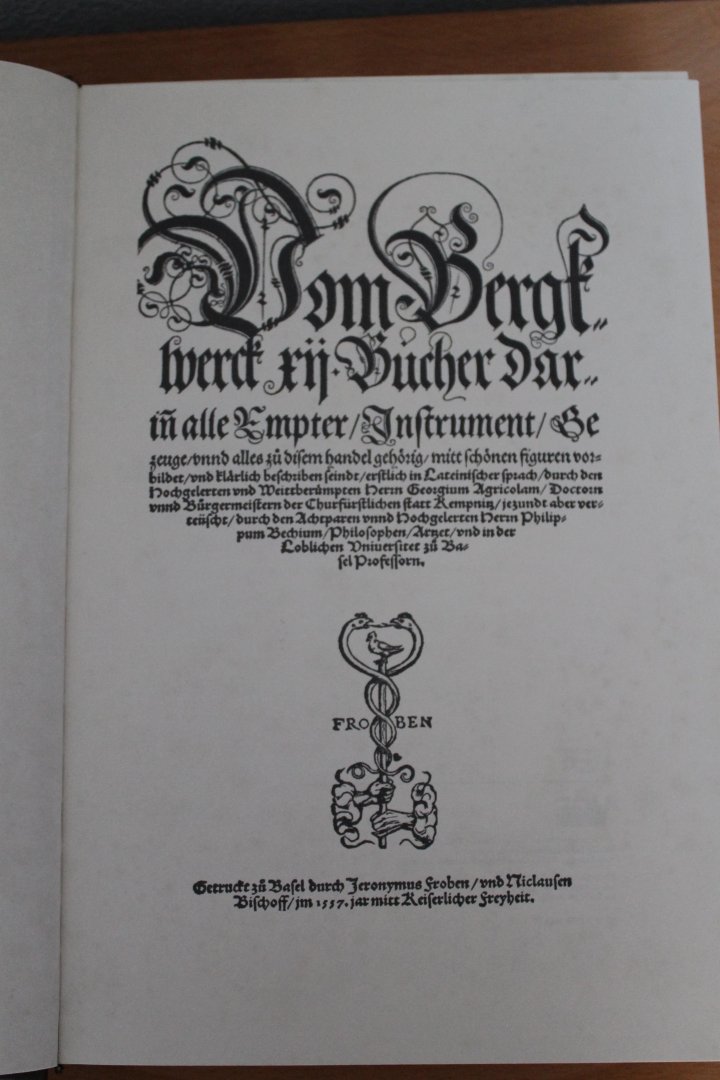 Vom Bergkwerck XII Bücher darin alle Empter/Instrument/Bezeuge/,unnd alles zu disem handel gehörig/mitt schönen figuren vorbildet/und klärlich beschriben seindt/erstlich in Lateinischer sprach...