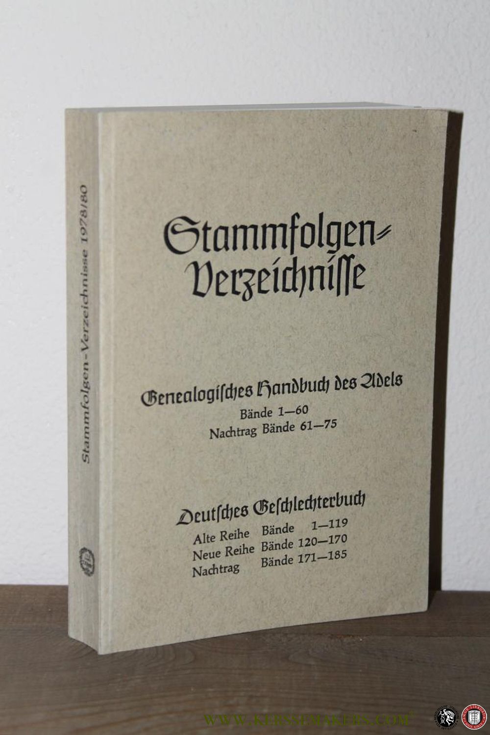 Stammfolgen-Verzeichnisse (1978-1980). Genealogisches Handbuch des Adels. Bände 1-60, Nachtrag Bände 61 - 75. Deutsches Geschlechterbuch. Alte Reihe Bände 1 - 119, Neue Reihe Bände 120-170, Nachtrag Bände 171-185