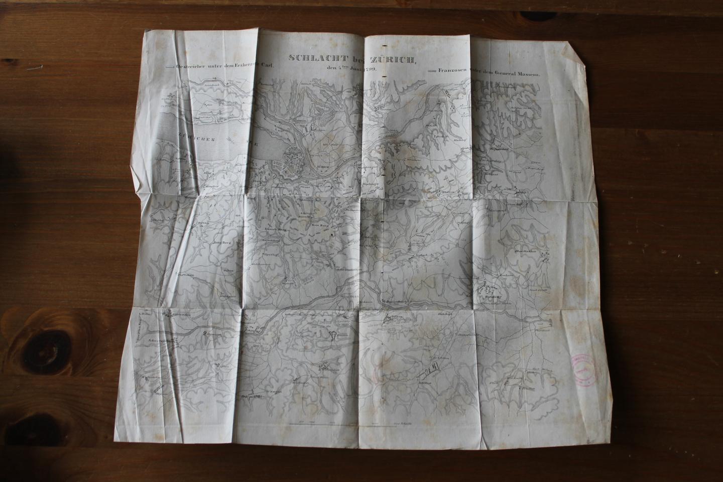 Plane der Schlacht bei Stokach + Plane der Schlacht bei Zürich (lose beigefügt, beschädigt, siehe Bild).