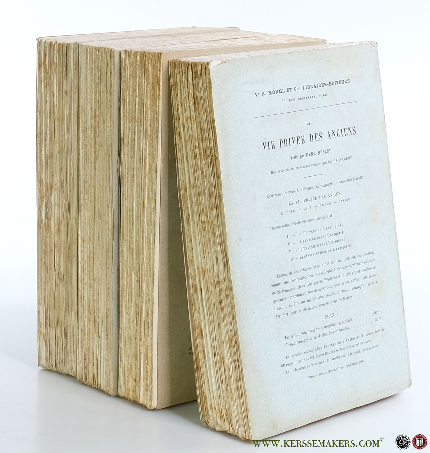 ¶ Contents: (1): Les peuples dans l'antiquité. viii,622 pp. (2): La famille dans l'antiquité. iv,572 pp. (3): Le travail dans l'antiquité. iv,608 pp. (4): Les institutions dans l'antiquité. iv,676 pp.