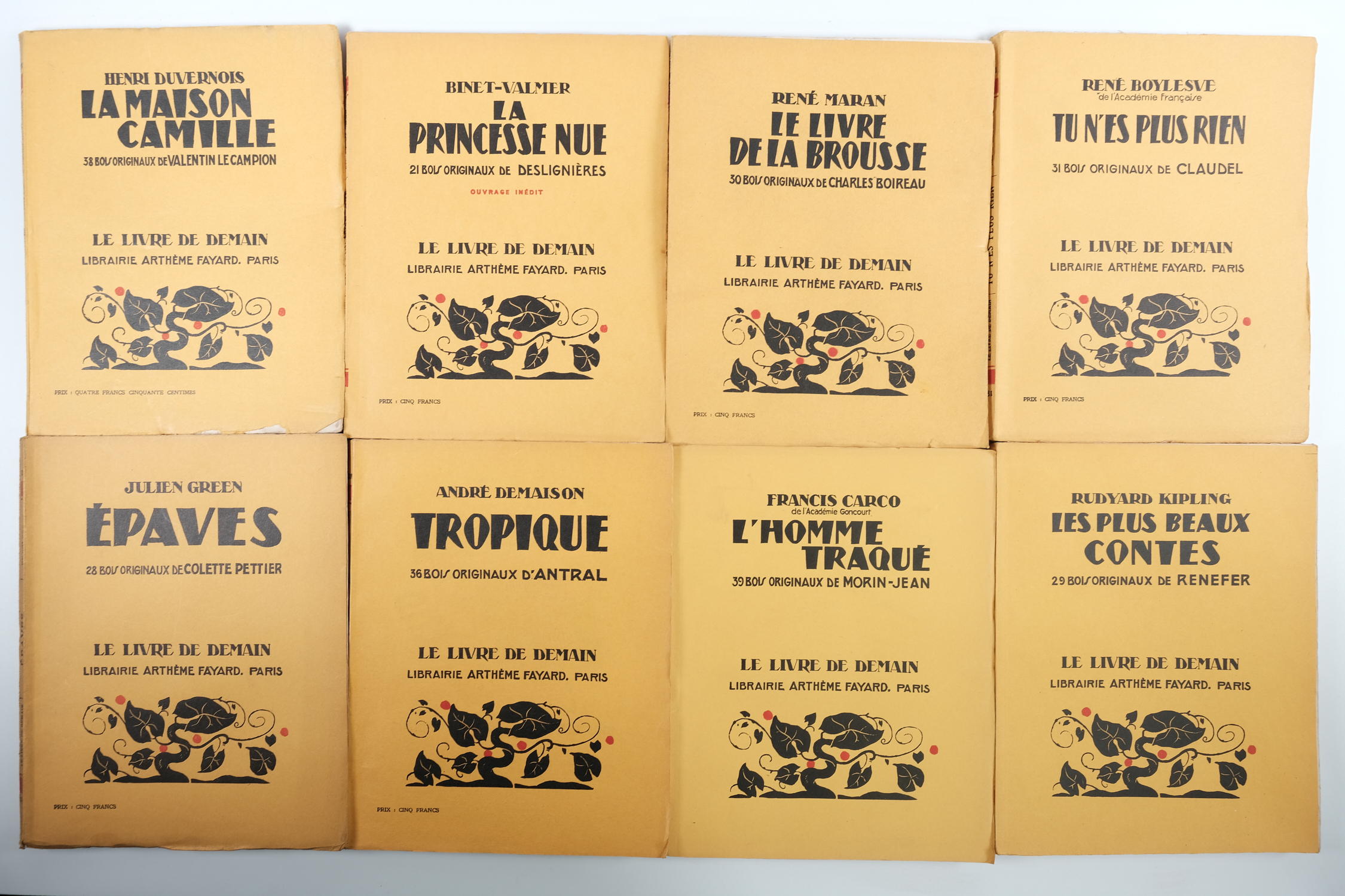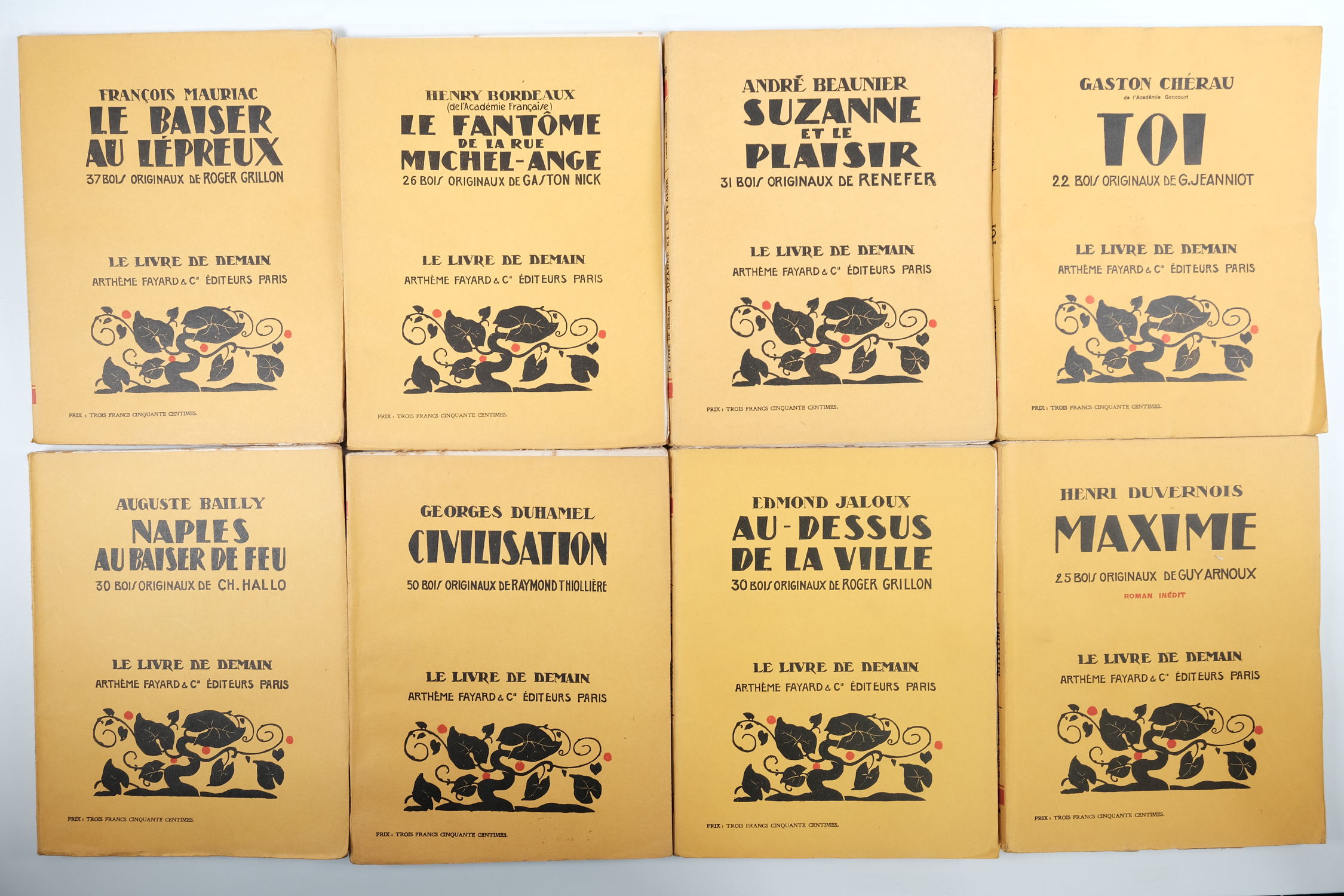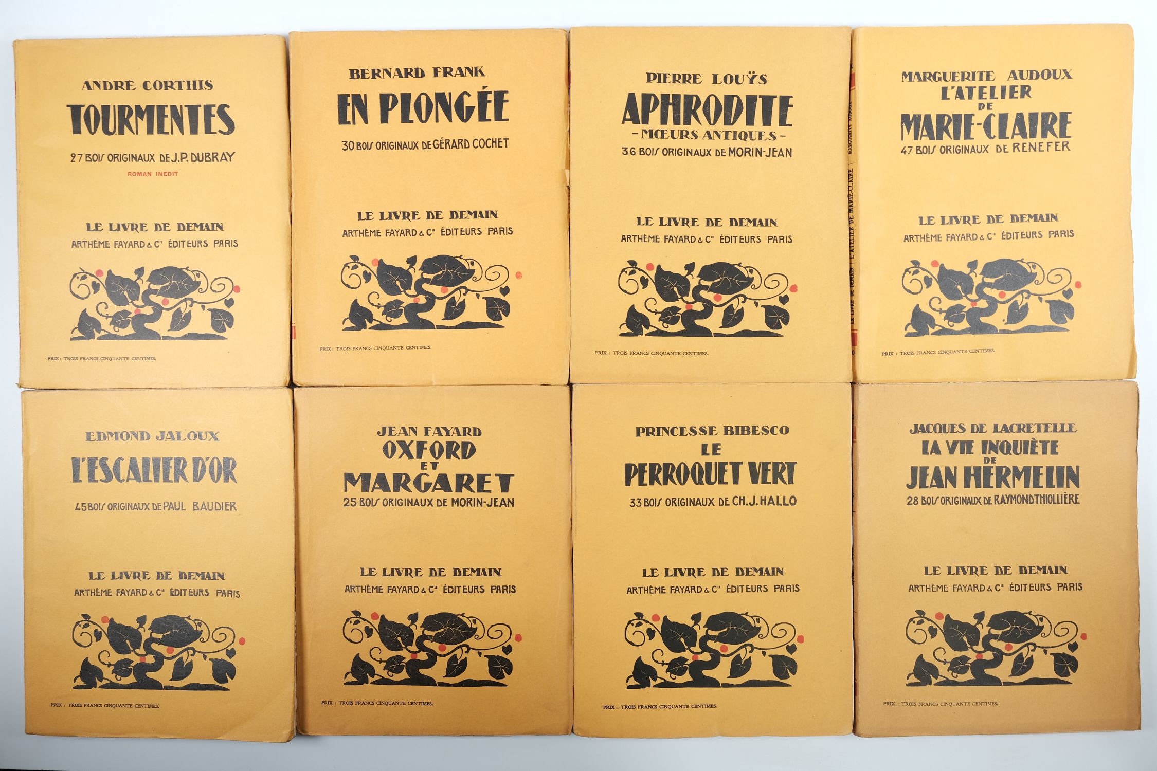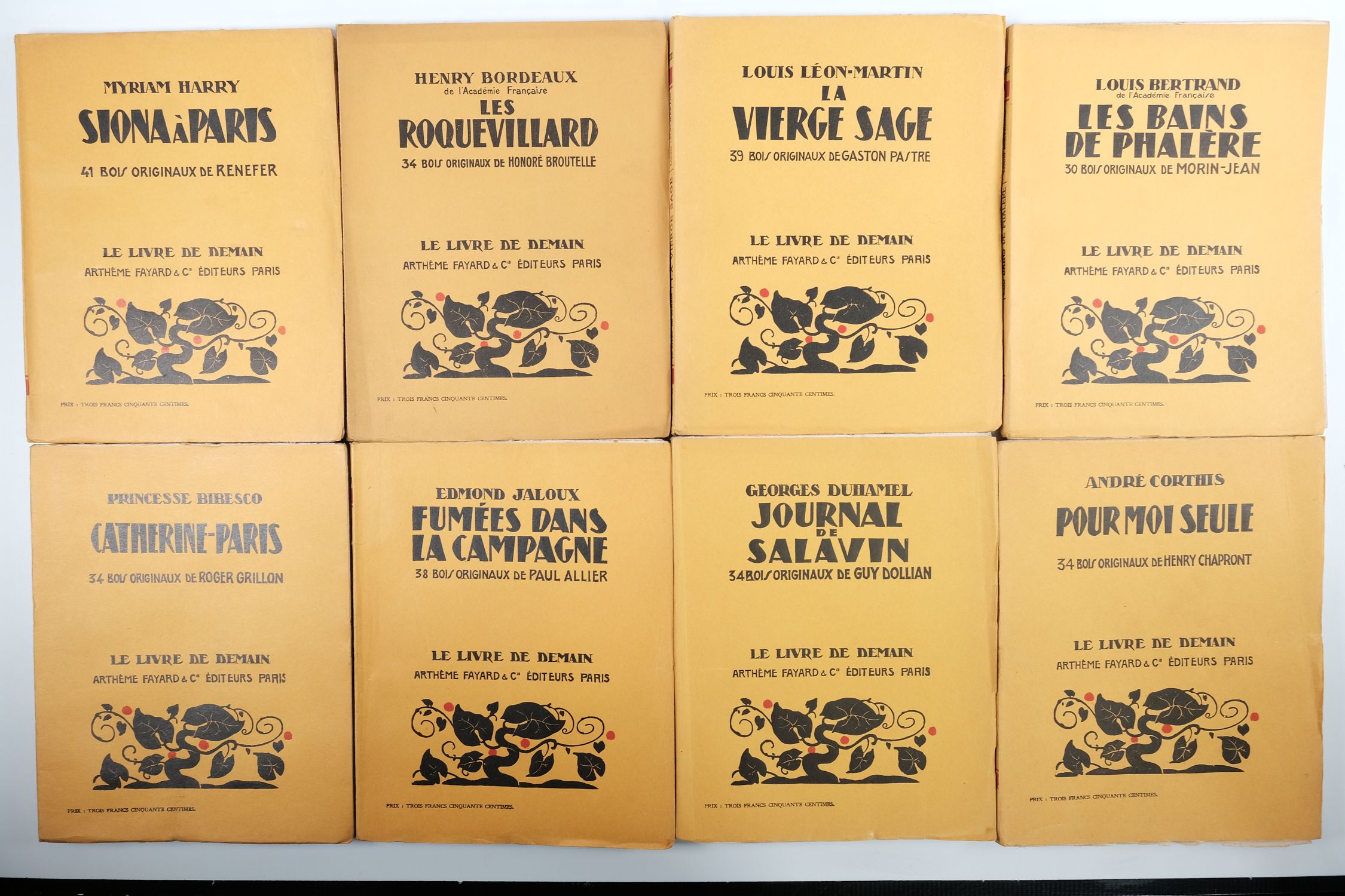 Lot with 91 livres de LE LIVRE DE DEMAIN / Corthis, Duvernois, Boylesve, Villetard, Flaubert, Harry, Elder, Chateaubriant, Boutet, Mauriac, Beaunier, Chérau, Bailly, Duhamel, Jaloux, Duvernois, Corthis, Frank, Bibesco, Cocteau, Maran, Troyat... [ and many others, see pictures for all titles present ].