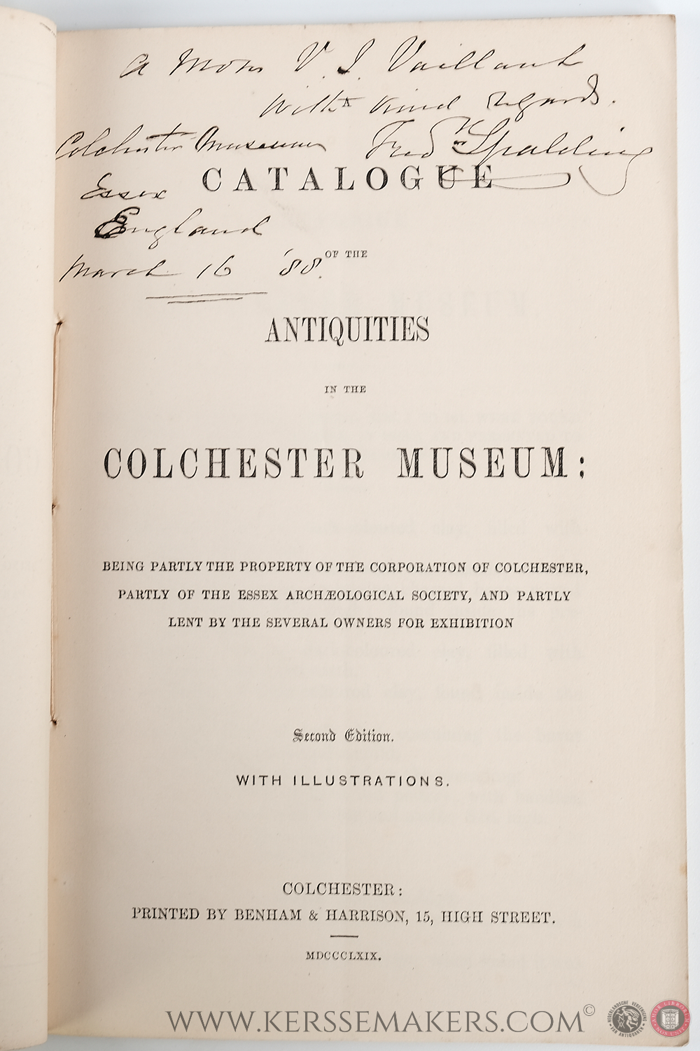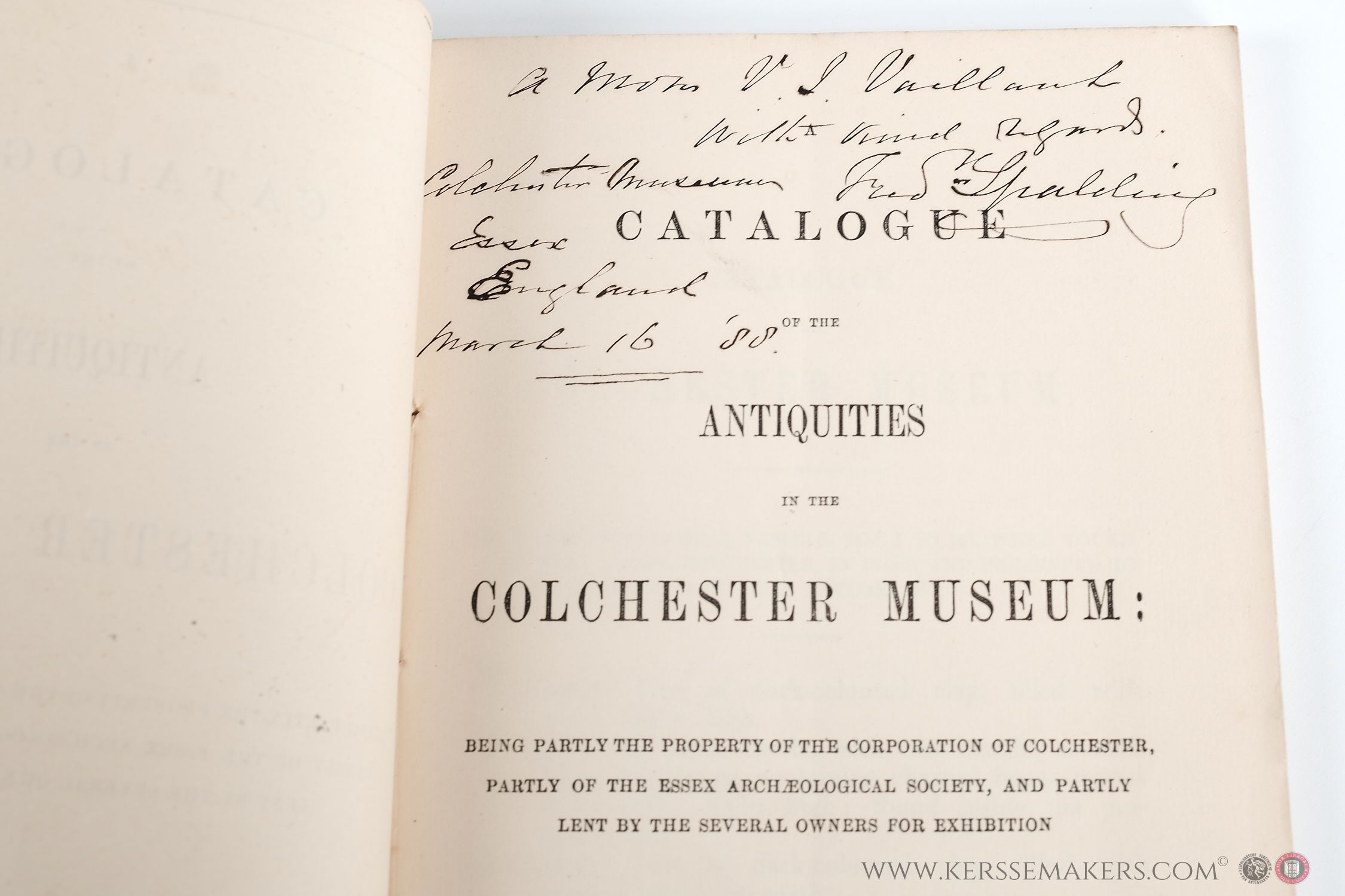 Original paperback. 40 pp. of text and 6 plates with accompanying texts; 21.5x13.5 cm. Text in English. Signed by Frederick Spalding, (author?) and curator of the museum. Dated March 16th, '88. Very well preserved, see pictures