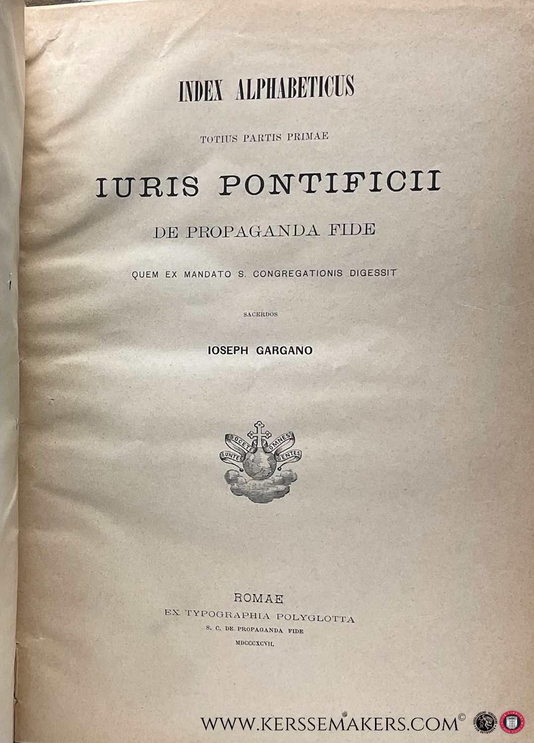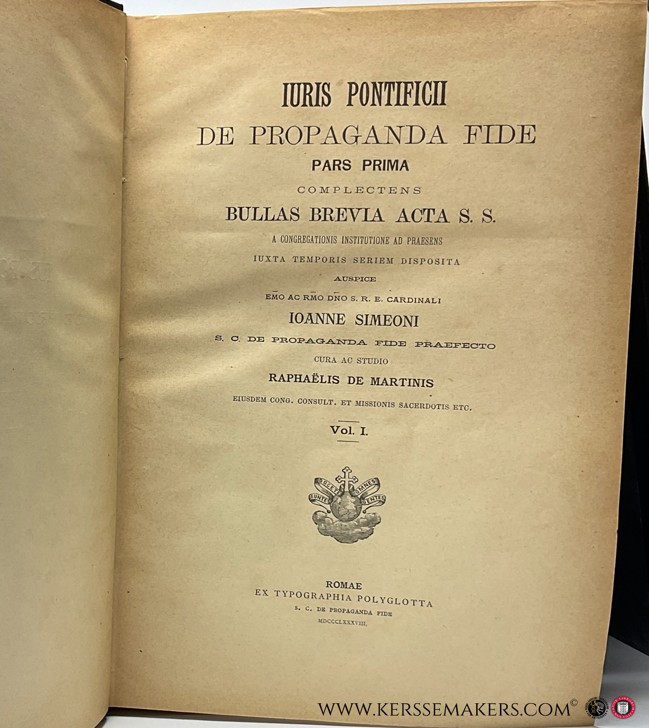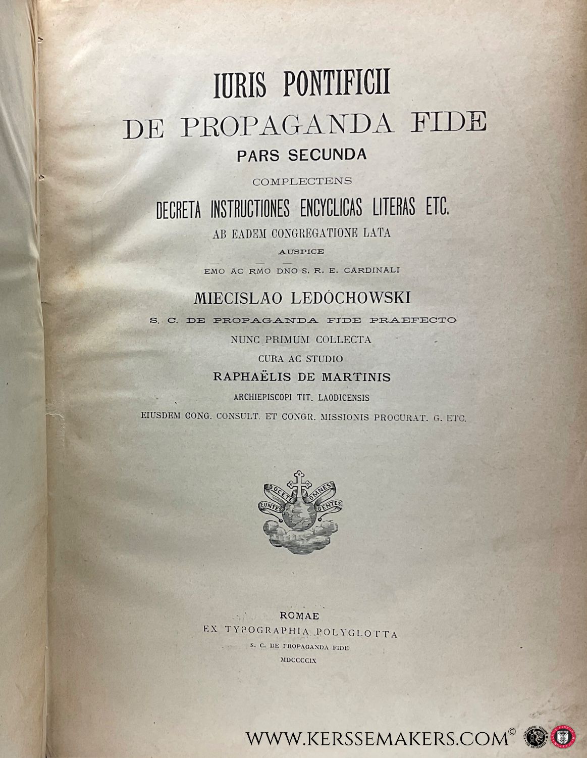 Iuris Pontificii de Propaganda Fide, Pars Prima I-VII. & Iuris? complectens decreta Instructiones Encyclias Literas etc. Pars Secunda & Index alphabeticus totius partis primae Iuris Pontificii. [ together 9 books ].