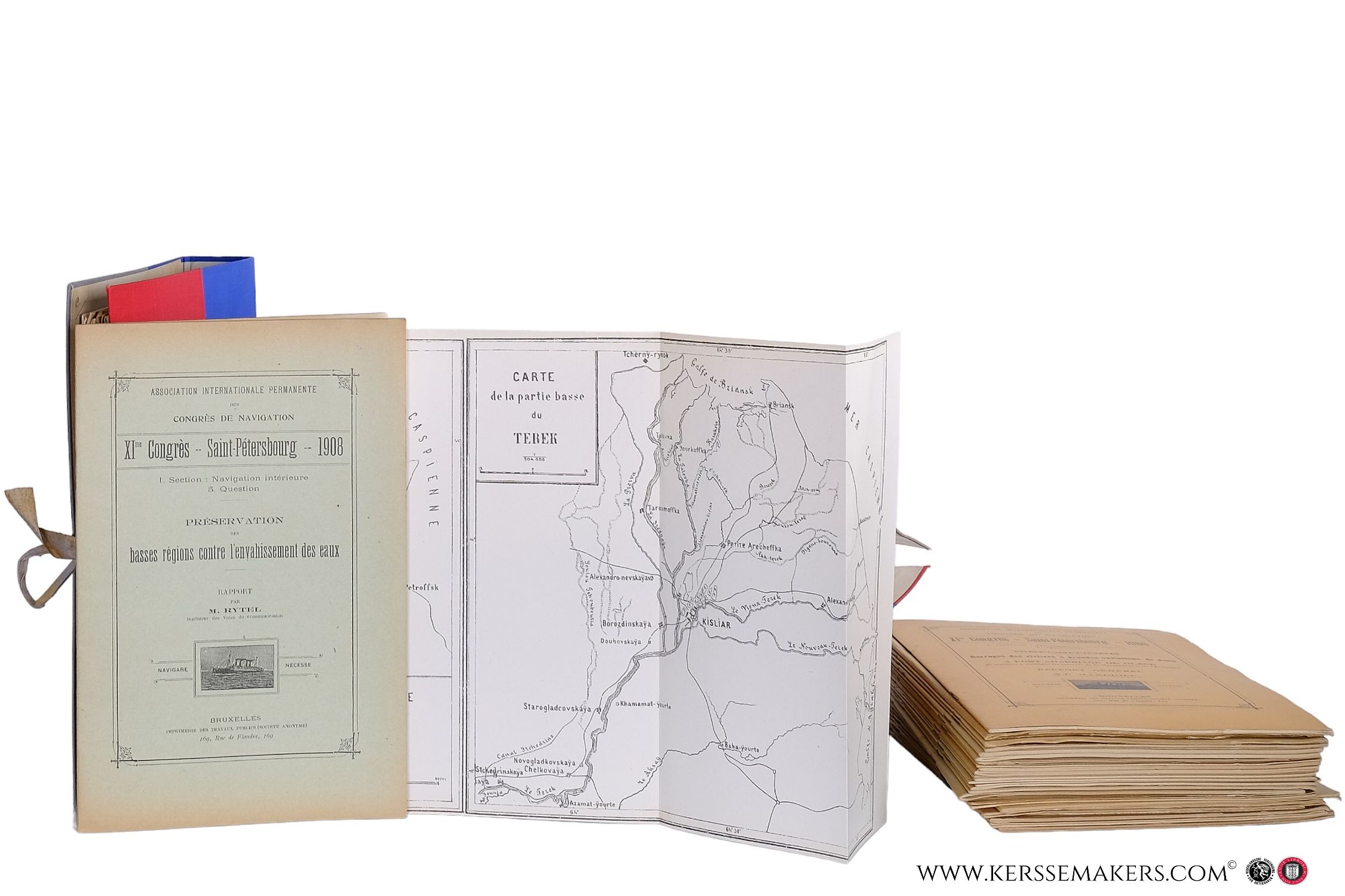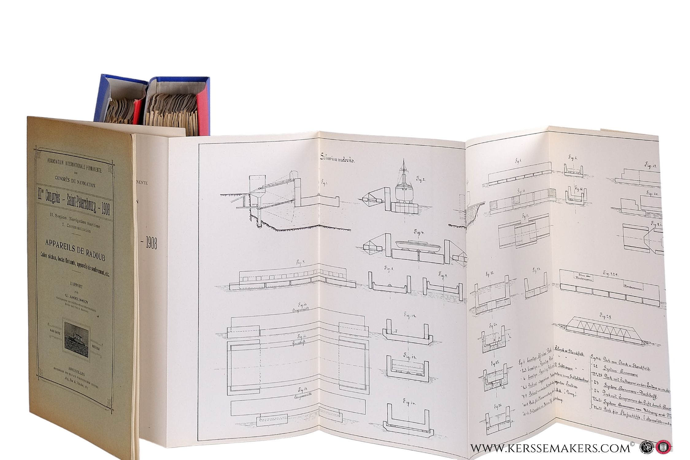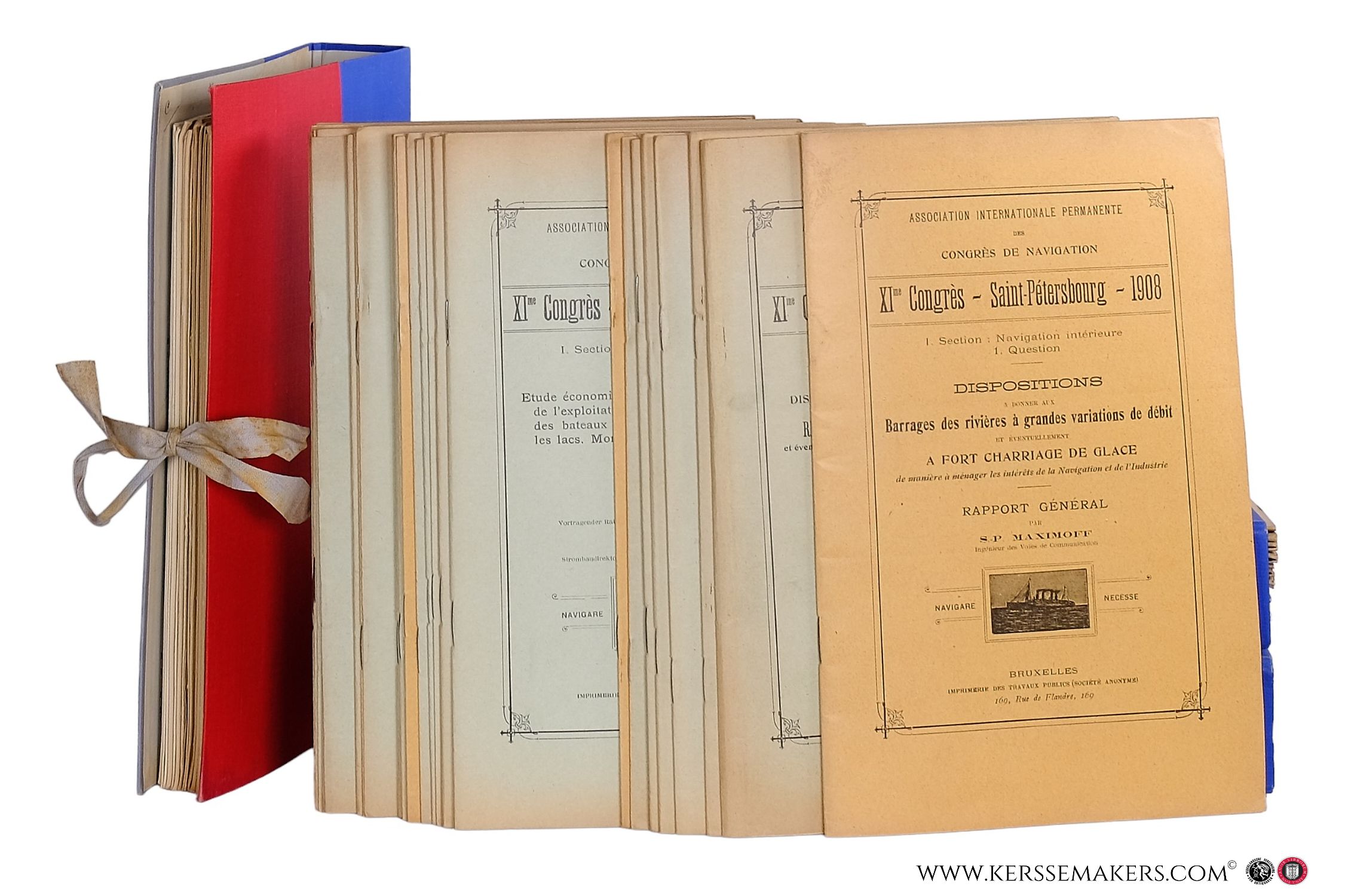 Original cloth portfolios with ribbons; 25.5x16.5 cm. This collection includes 97 stapled booklets, several with folding plates, plans, maps. French text. Please note that there is only one booklet missing from the 2nd Section 'Rapports,' the one authored by Szystovski and titled 'Ports maritimes.' Apart from this missing booklet, all other booklets in the collection are present and in very good condition. Very rare! Please refer to the provided pictures for further details.
