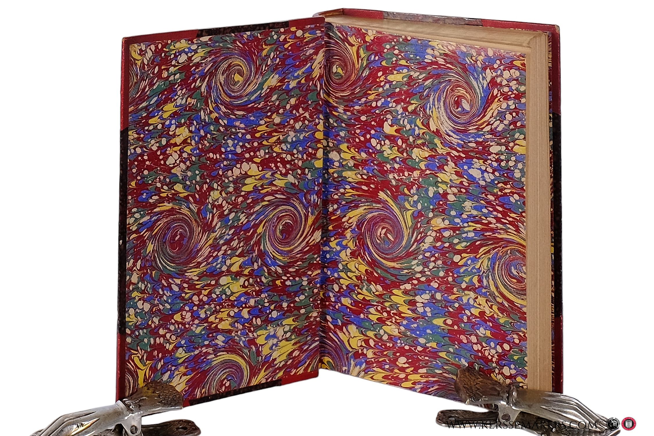 Original red half leather, gilt title and decoration on spine. Leather corners. Top edge gilt. viii,(2),ii,186,(4),188 pp., many ill.; 27.5x19 cm. Text in French (paper browned) Very good, decorative binding, see pictures