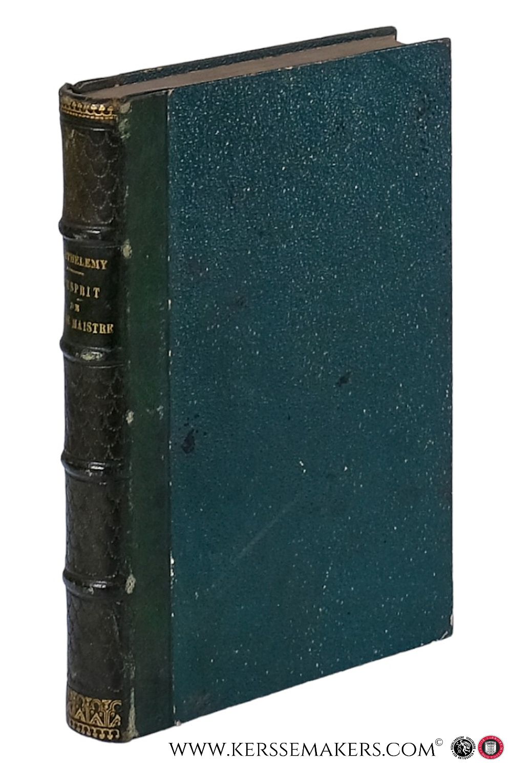 Green half leather hardcover, 4 raised bands. Binding signed on first endpaper: H. Sele, relieur, Anvers. xvi,440 pp.; 18x12 cm. Text in French / Français. - (slightly browned, some spots/ foxing) Although very good, decorative spine, see picture