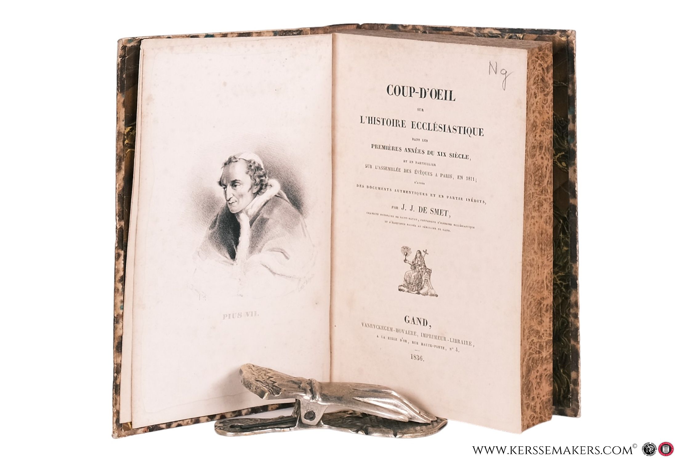 Half leather hardcover. viii,474,(2) pp.; portrait frontispiece of Pius VII.; 21.5x14 cm. Text in French / Français. - (leather bit rubbed, hinges bit weak, paper slightly browned, some spots/ foxing) Although very good, see picture