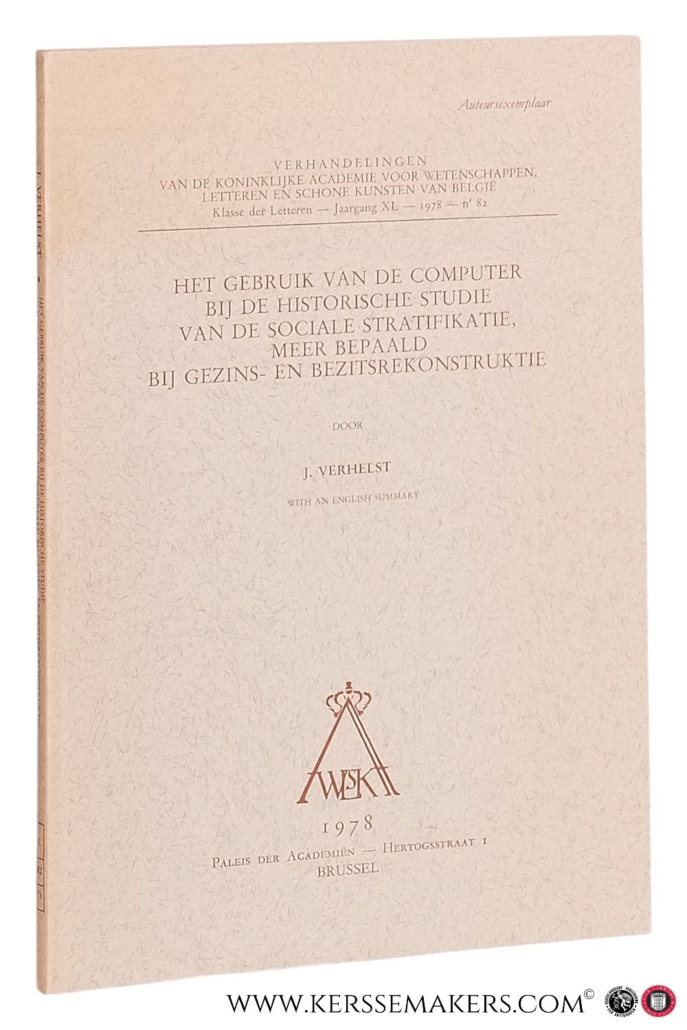 Paperback. 110 pp.; 26x18 cm. " Verhandelingen van de Koninklijke Academie voor Wetenschappen, Letteren en Schone Kunsten van Belgie. Klasse der Letteren. Jaargang XL, 19878, Nr. 82 " Dedication copy, signed. Text in Dutch / Nederlands - Very good. See picture