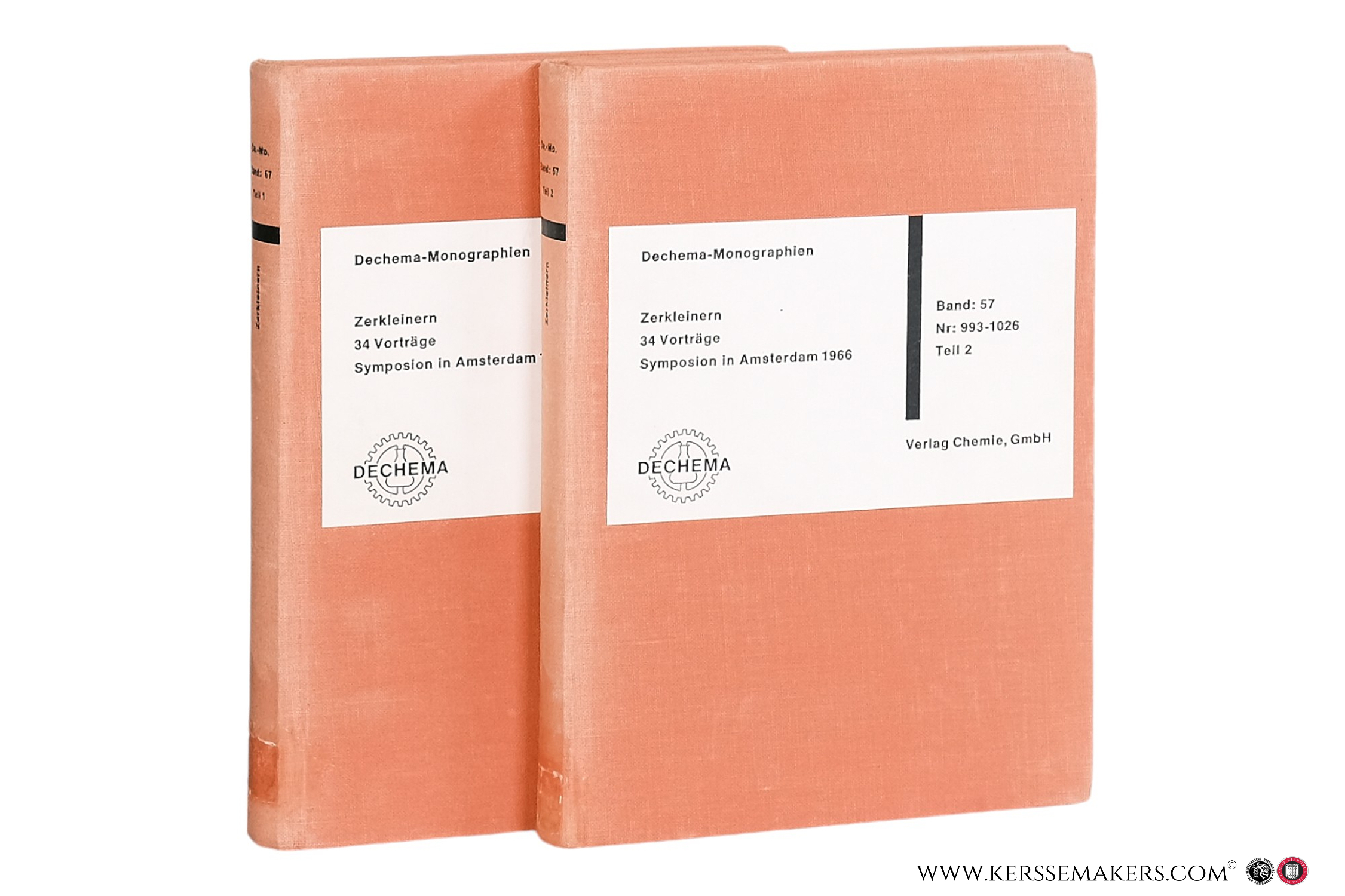 2 vols. Original cloth. 448 pp. & 449-900 pp.; 21x15.5 cm. " Dechema Monographien Nr. 993-1026. Band 57 - Forschung und Entwicklung auf dem Gebiete des Chemischen Apparatewesens in Einzelabhandlungen " - (trace of removed labels on spines, stamps, library markings erased with black ink and white labels, paper browned) Although good, see picture