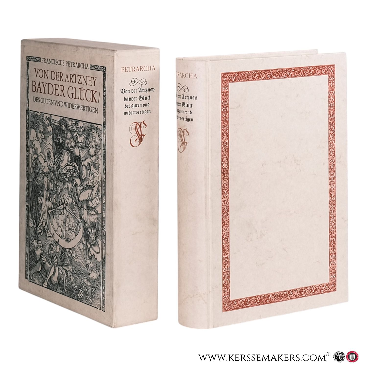 Facsimile edition in German of Francesco Petrarca's work 'De remediis utriusque fortunae', originally published in 1532 by Heinrich Steiner in Augsburg. Reproduces the original's woodcut illustrations and decorative elements. Edited and commented by Manfred Lemmer. Bound in cardboard covers with parchment-look finish, housed in a matching cardboard slipcase. 178 leaves, followed by a commentary section (pages 181?209). Measures 30 x 21.5 cm. Fine condition, see picture.