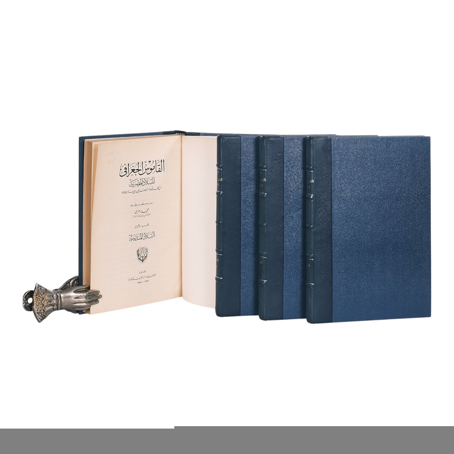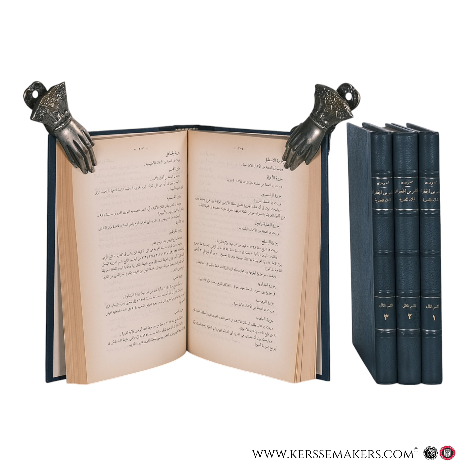 Four volumes, 27.5 x 19.5 cm, uniformly bound in blue half-leather with gilt lettering on spine. Text in Arabic. Paper slightly yellowed, ex-libris stamp of previous owner in each volume. Very good set, see picture. Weight is 4.3 kg.