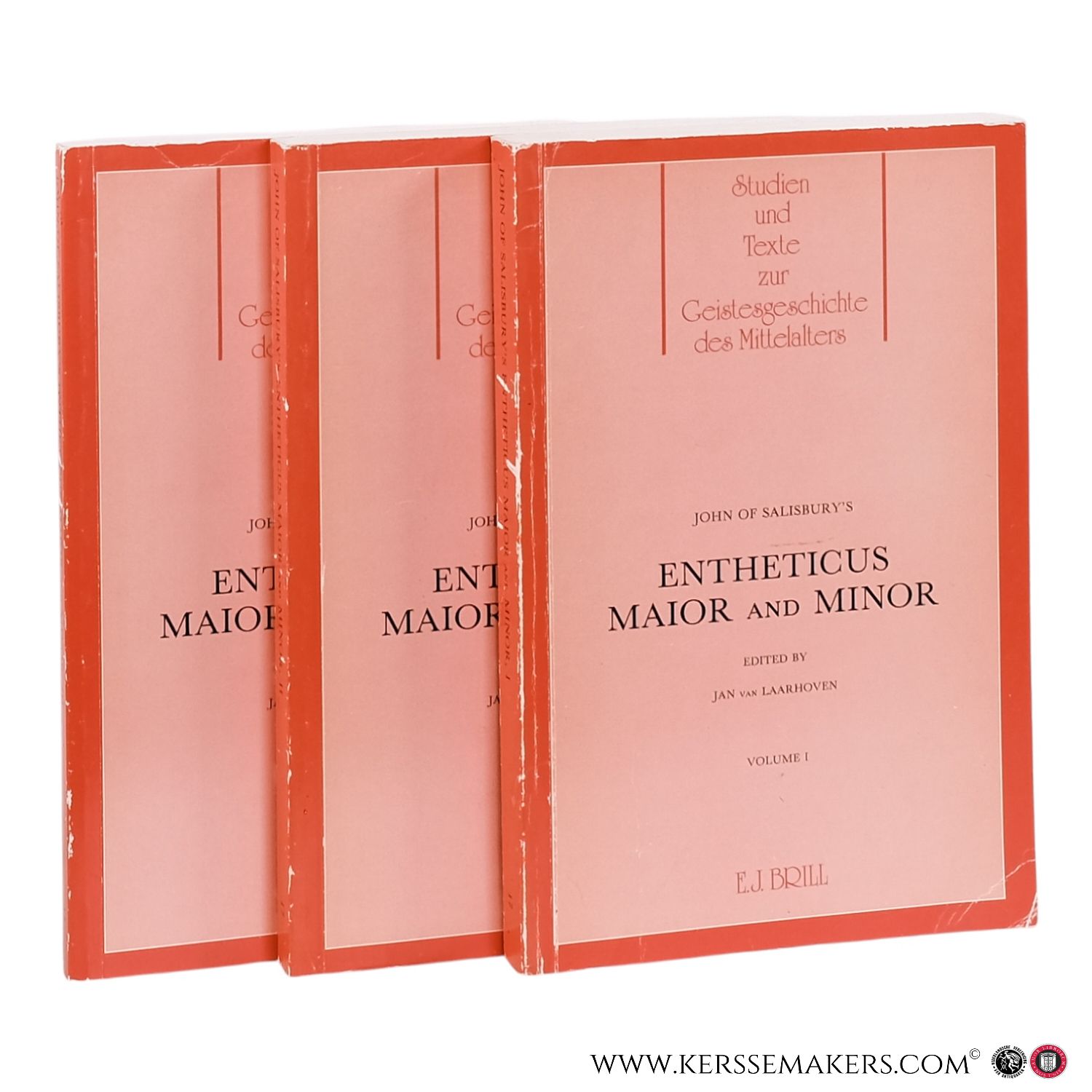 3 vols. Paperbacks. xvi,250 pp., xiv,251-446 pp. & x,447-616 pp.; 24x16 cm. " Studien und Texte zur Geistesgeschichte des Mittelalters, Band XVII ". Text in English. - (covers bit worn and slightly damaged in some places, small stain to edge volume 3, a few markings/ lines in pencil) Although still good set, see picture.