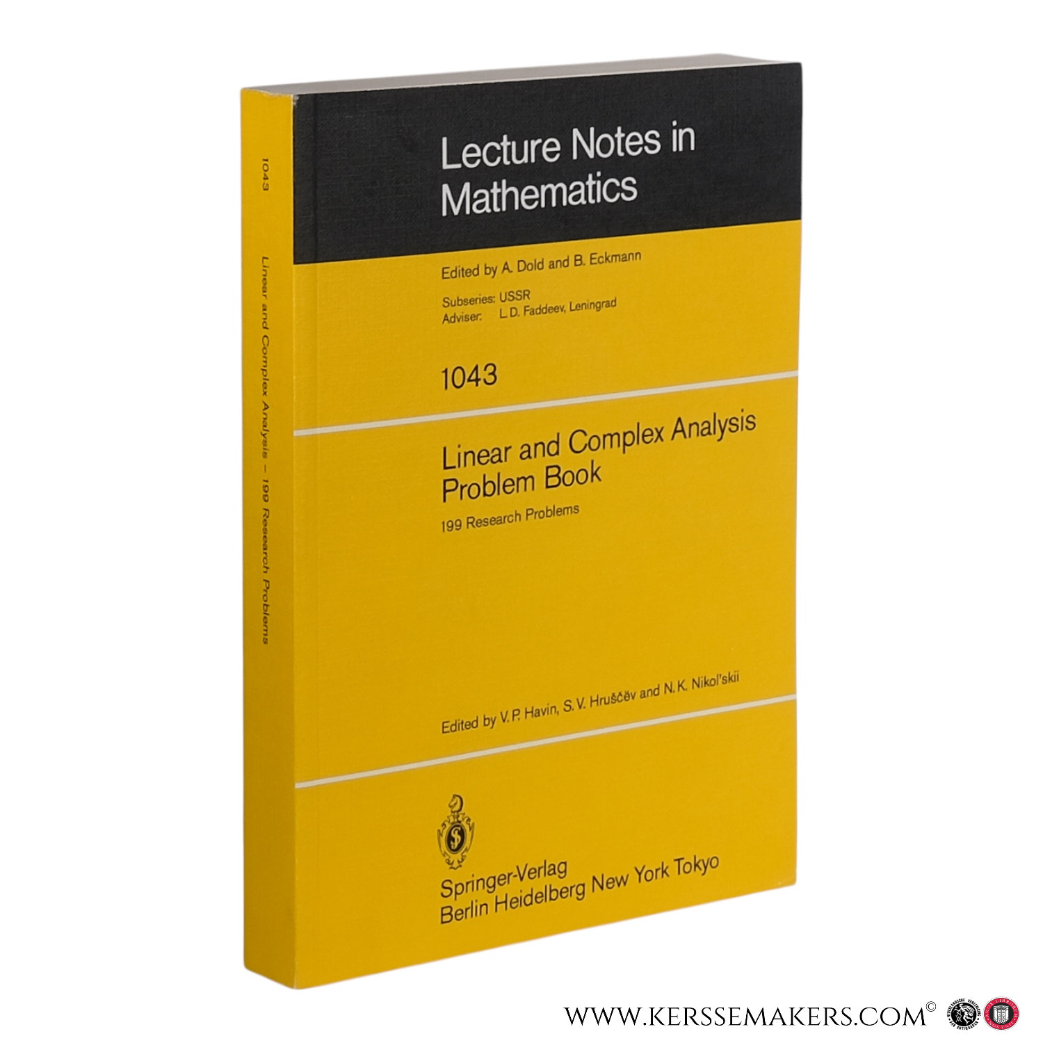 This volume contains 199 research problems in linear and complex analysis, compiled and edited by V. P. Havin, S. V. Hruščëv and N. K. Nikol’skii. It forms part of the Lecture Notes in Mathematics series (vol. 1043), edited by A. Dold and B. Eckmann, subseries USSR with adviser L. D. Faddeev.