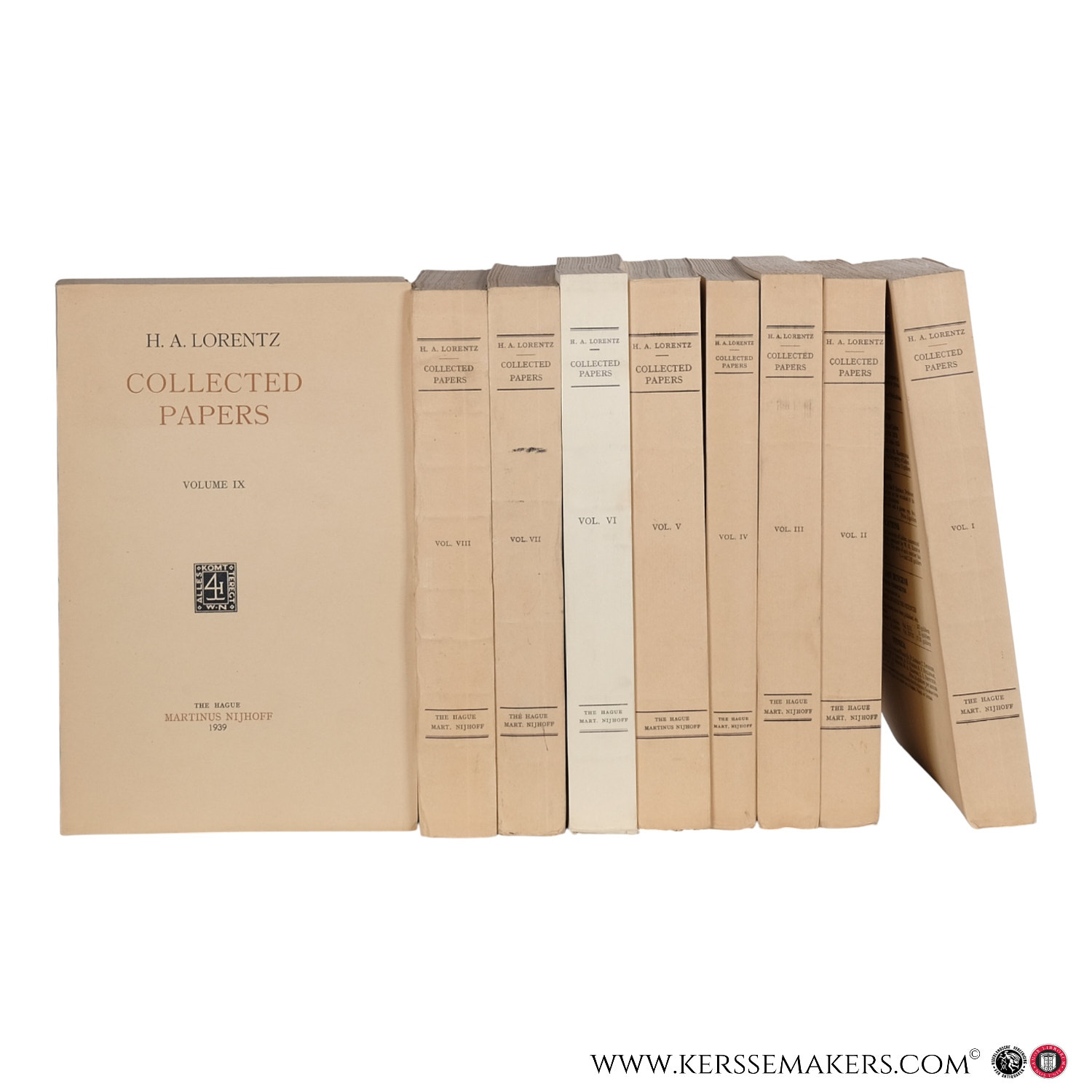 Complete set of Lorentz’s collected scientific works in nine volumes, published posthumously. Contains key papers in theoretical physics, including contributions to electromagnetism, relativity, and optics, in the original languages of publication. With portrait of the author in volume I.